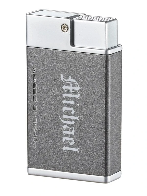The Baden Double Torch Flame Lighter created by Porsche Design is a beautifully designed lighter with a powerful flame. The two wind-resistant jet flames are ignited when the single action trigger is pressed. With a unique Porsche Design logo featured on the fuel viewing window, you’ll always know when it’s time to refill with butane. The solid dark grey body is accompanied with a sleek brushed silver color. Located at the bottom is a built-in 8mm cigar punch, along with a flame adjuster and butane refillable port. Purchase this today from eLighters and get it personalized with laser engraving! Dark Grey Metal Body with Brushed Chrome Accents Double Wind-Resistant Jet Flame Lighter; Fuel Level Gauge on Back Dimensions: Length: 2.55 Inches, Width: 1.5 Inches, Height: 0.5 Inches; Weight: 3.4 Ounces Single Action Ignition; Single Motion Trigger On The Top Located at the Bottom – Flame Adjuster; Butane Refill; Built-in 8mm Cutter