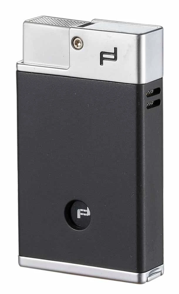 The Baden Double Torch Flame Lighter created by Porsche Design is a beautifully designed lighter with a powerful flame. The two wind-resistant jet flames are ignited when the single action trigger is pressed. With a unique Porsche Design logo featured on the fuel viewing window, you’ll always know when it’s time to refill with butane. The solid matte black body is accompanied with a sleek brushed silver color. Located at the bottom is a built-in 8mm cigar punch, along with a flame adjuster and butane refillable port. Purchase this today from eLighters and get it personalized with laser engraving! Matte Black Metal Body with Brushed Chrome Accents Double Wind-Resistant Jet Flame Lighter; Fuel Level Gauge on Back Dimensions: Length: 2.55 Inches, Width: 1.5 Inches, Height: 0.5 Inches; Weight: 3.4 Ounces Single Action Ignition; Single Motion Trigger On The Top Located at the Bottom – Flame Adjuster; Butane Refill; Built-in 8mm Cutter