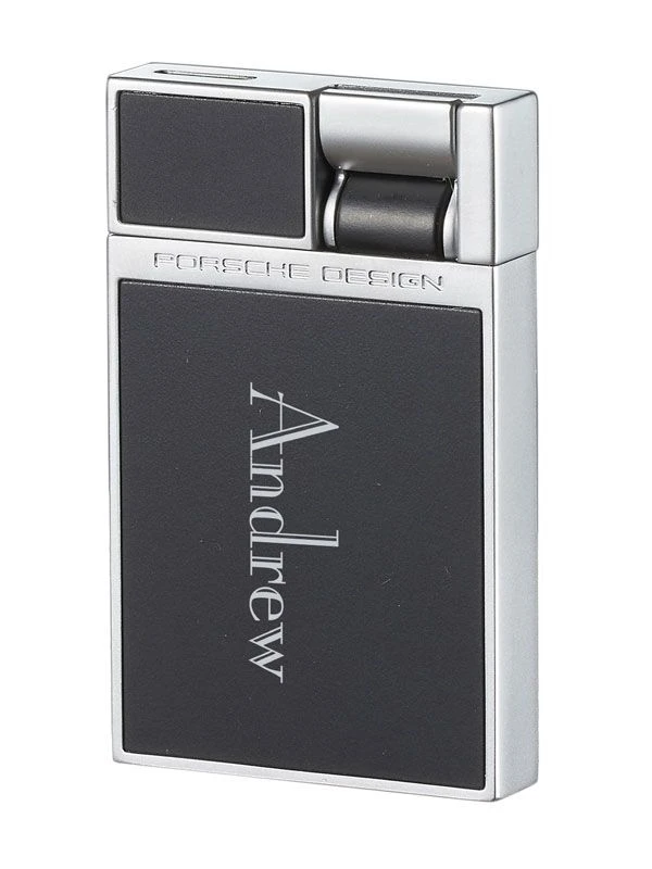 The Sleek Porsche Design Heber Flat Wind-Resistant Jet Flame comes in a slim yet sophisticated profile. The matte black combined with the brushed silver create a sense of authority. The single ignition pull down trigger allows a quick spark, and the flat flame ensures your cigar gets an even light. With a Porsche Design logo featured on the fuel viewing window, you’ll always know when it’s time to refill with butane. Combined with a flame adjuster and refill location found at the bottom, this lighter is one of a kind. Purchase the Heber Lighter today from eLighters and get it personalized with laser engraving! Matte Black Metal Body with Brushed Chrome Accents Single Wind-Resistant Flat Flame Lighter; Fuel Level Gauge on Back Dimensions: Length: 2.6 Inches, Width: 1.5 Inches, Height: 0.3 Inches; Weight: 2 Ounces Single Action Ignition; Single Motion Trigger On The Top Flame Adjuster and Butane Refill Both Located at the Bottom