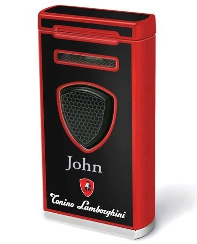 Stylish and sleek, a red and black combination is the perfect finish for this Tonino Lamborghini lighter. A strong titanium body gives the Pergusa an impressive durability. The front, back, and top of this lighter feature a smooth black finish with red accents that match its sides. Near the bottom of this lighter, you will find the charging bull logo and the name Tonino Lamborghini in a white script that can’t be missed against the black finish. Its ignition button even features a honeycomb pattern further adding to the lighter’s aesthetic appeal. Flip open the top and press this ignition button to produce a unique dual flame that combines a torch and candle flame. In addition to this powerful flame, the Pergusa features a built-in cigar punch on its bottom There is even a fuel level viewing window on its back for your convenience so be sure to order this butane refillable lighter today! Laser Engraving is offered on this item.