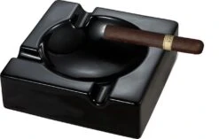 Gather your smoking buddies around the Donovan for a relaxing and fully enjoyable smoking experience. Its deep basin will easily catch all of the ash from your cigars as well as other debris. Four grooves, one on each edge, serve as cigar rests for you and your buddies. The ceramic body has a beautiful, glossy black finish that shines. Its sleek, dark look makes the Donovan perfect for patio use on a nice day so go ahead and make your smoking experience all the more pleasurable and order today! Approx. Dimensions: 8.25″ (Height) x 8.25″ (Width) x 2.75″ (Thickness) Approx. Weight: 2 lbs. and 3.34 oz. Black Ceramic Four Cigar Rests Engraving is not offered on this item.