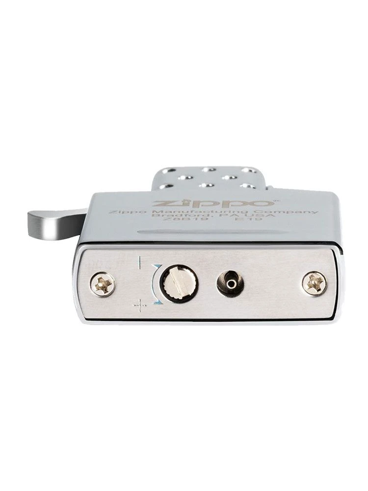 This is a double torch butane insert for any zippo case, perfect for someone after a more targeted and powerful flame jet than a traditional zippo torch Polished Chrome Finish; Dual Butane Torch Emitters Slides in and out of your favorite Zippo Case for easy swapping and refilling Approximate Dimensions: 2 x 1.5 x 0.5 inches All windproof Zippo Lighter Inserts are sturdy metal construction, Made in the USA Due to Shipping Regulations, this Product Shipps Empty of Butane